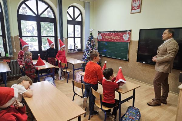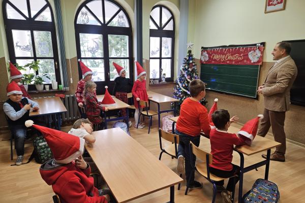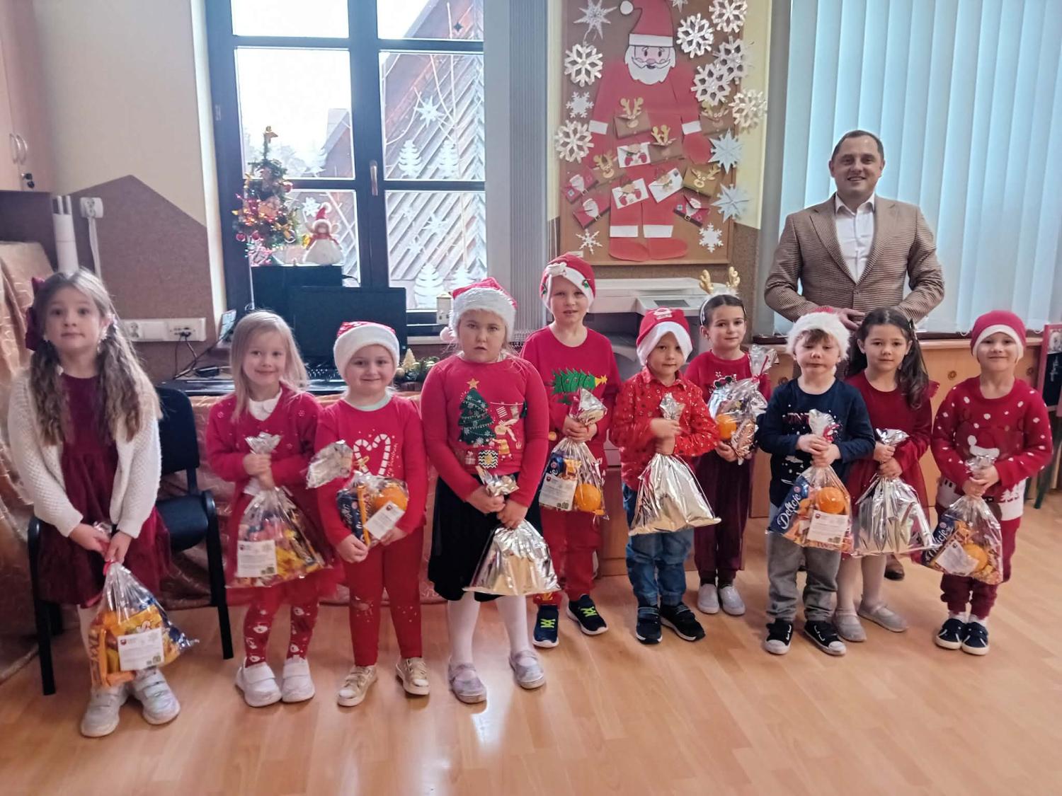 5 grudnia naszych najmłodszych odwiedził Pan Wójt Andrzej Pietrzyk. Podczas spotkania przedszkolaki oraz uczniowie klasy 1 otrzymali od Pana Wójta paczki ze słodyczami.