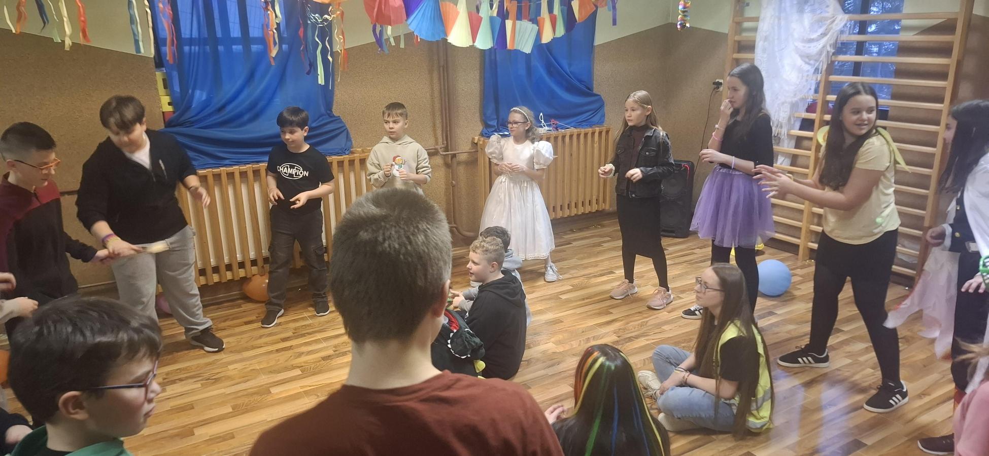17 lutego w naszej szkole odbyła się radosna zabawa karnawałowa. Każda z klas wcześniej wylosowała temat przewodni strojów, dzięki czemu sala wypełniła się kolorowymi i pomysłowymi przebraniami.