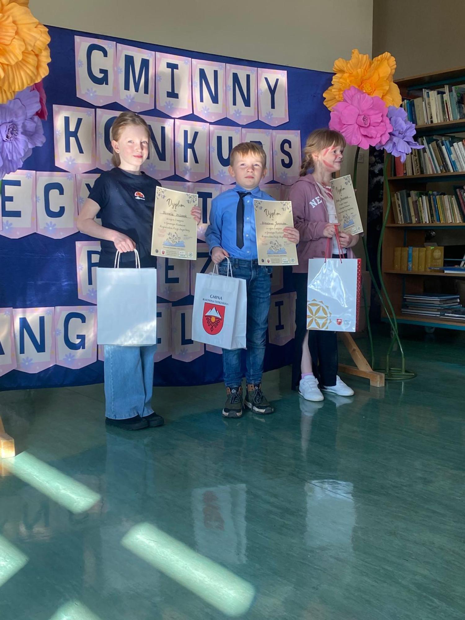 Do etapu gminnego, który odbył się 11 kwietnia w Szkole Podstawowej w Bukowinie Tatrzańskiej przeszło czworo uczniów, którzy zaprezentowali się na bardzo wysokim poziomie. Troje z nich zajęło czołowe miejsca w swoich kategoriach wiekowych: