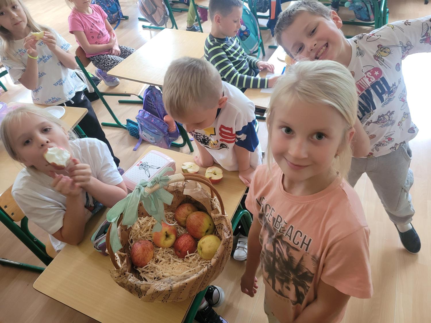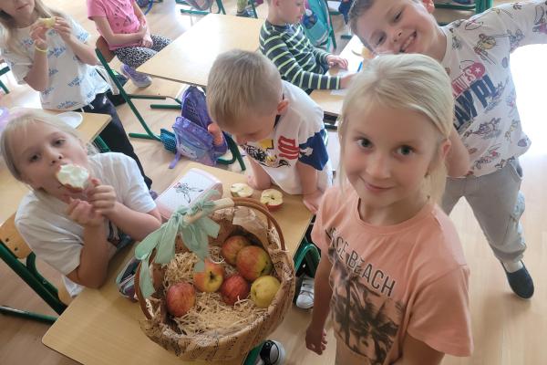 Na zakończenie dzieci wzięły udział w degustacji różnych odmian jabłek, oceniając ich wygląd, smak i soczystość. Było dużo śmiechu, zdrowych przekąsek i ciekawych odkryć!