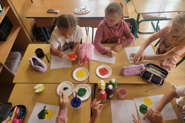 Nie zabrakło też kreatywności – uczniowie wykonali piękne prace plastyczne inspirowane jabłkami, które można podziwiać w galerii poniżej.