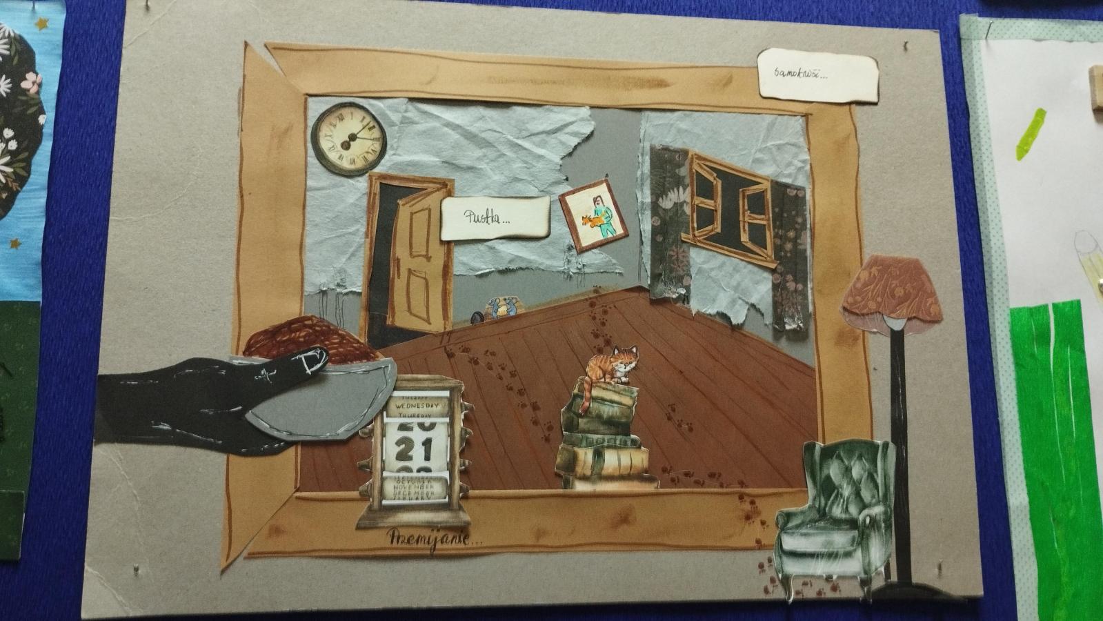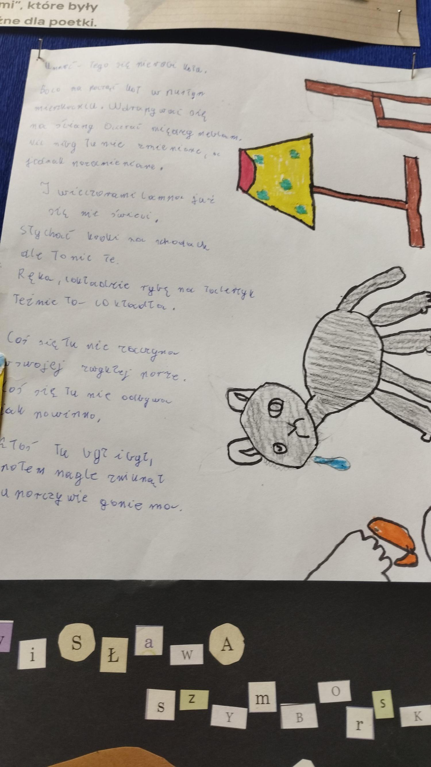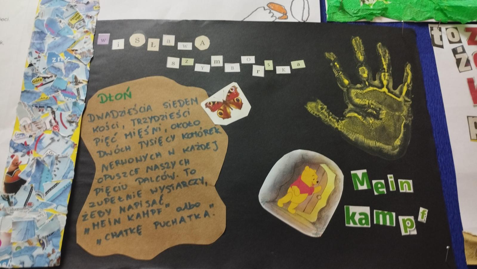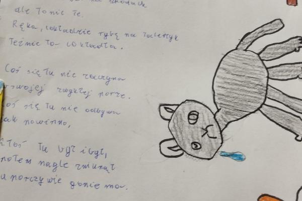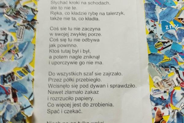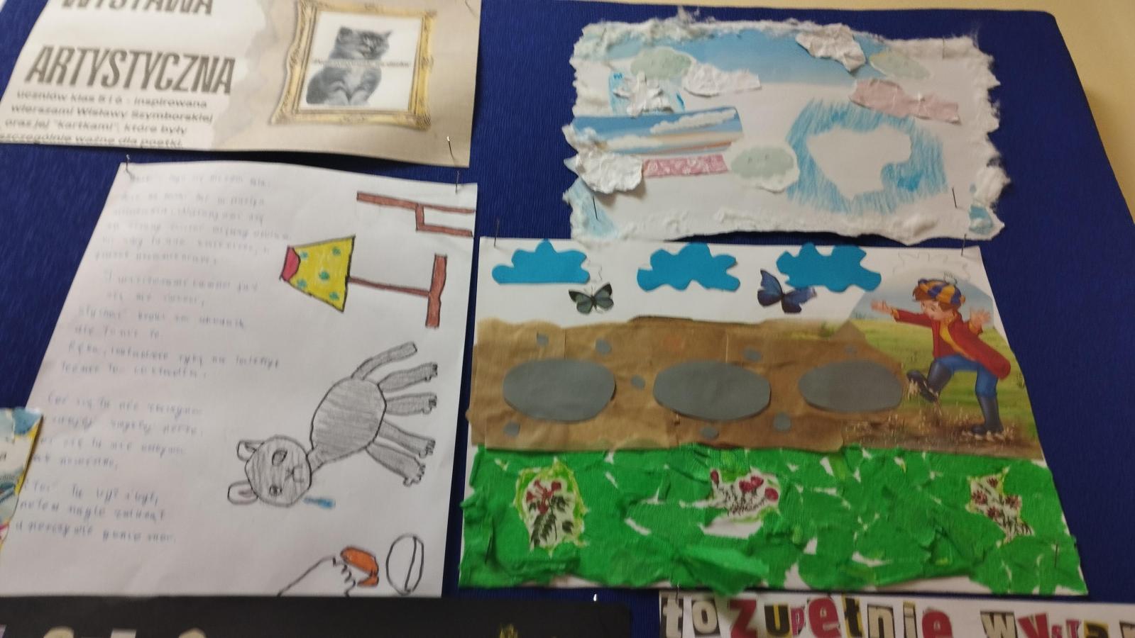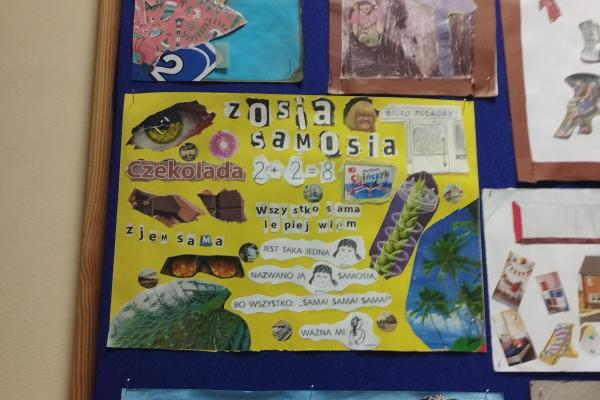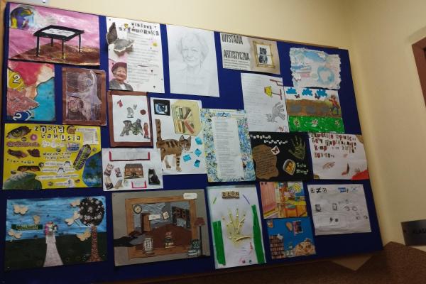 Nasze zdolne dzieci wraz ze swoimi rodzicami „bawili się” sztuką i poezją. Ich zadaniem było wykonanie kartki inspirowanej jednym z wierszy Szymborskiej. Z prac powstała wyborna wystawa artystyczna. Każdy teraz może zgadywać, o jakiż to utwór chodzi.